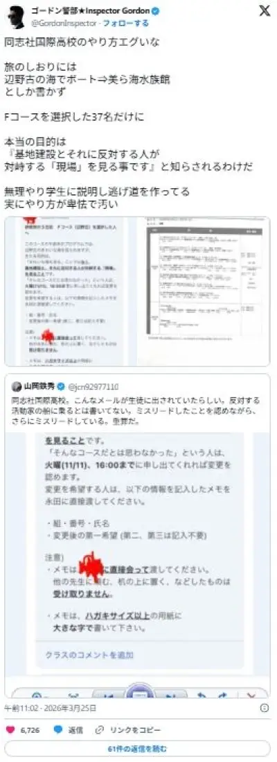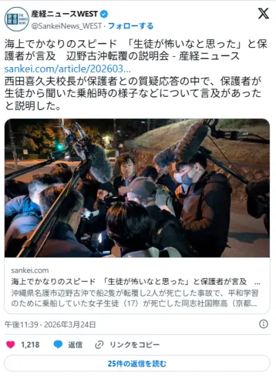 辺野古転覆 校長「海上でかなりのスピード、生徒が怖いなと思ったという話を私としては初めて知った」