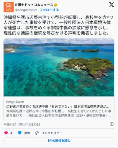 「辺野古活動家に対する誹謗中傷は看過できない!!」日本環境法律家連盟が声明