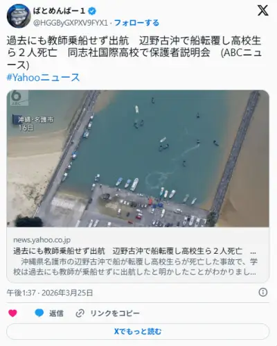 辺野古転覆事故、旅のしおりが流出「海をボートから見るコースです、タオル帽子持参のこと」