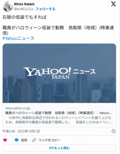 職員がハロウィーン仮装で勤務 鳥取県庁