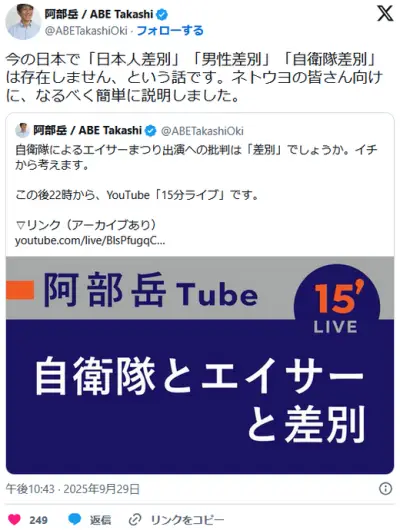 【テコンダー】阿部岳「日本人・男性・自衛隊相手にはいくら差別しても差別にはならない」