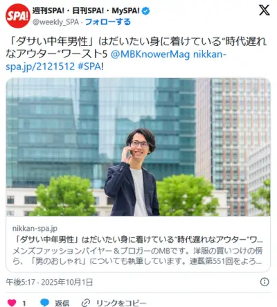 「ダサい中年男性」はだいたい身に着けている“時代遅れなアウター“ワースト5