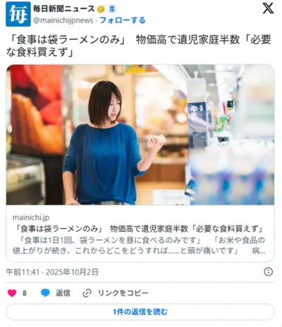 「食事は袋ラーメンのみ」 物価高で遺児家庭半数「必要な食料買えず」