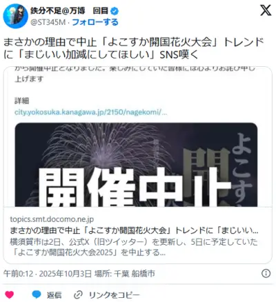 【横須賀】まさかの理由で中止「よこすか開国花火大会」