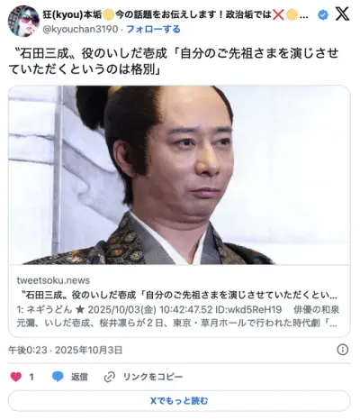 〝石田三成〟役のいしだ壱成「自分のご先祖さまを演じさせていただくというのは格別」