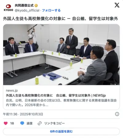 外国人生徒も高校無償化の対象に 自公維、留学生は対象外
