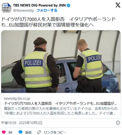 【欧州】ドイツが3万7000人を入国拒否 イタリアやポーランドも…EU加盟国が移民対策で国境管理を強化へ