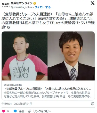 【変態教員グループ5人目逮捕】「お母さん…娘さんの部屋に入れてください」家庭訪問での奇行…“北の盗撮教師”は栃木県でも女子びいき