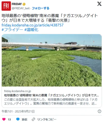 地球最悪の″侵略植物″南米の悪魔「ナガエツルノゲイトウ」が日本で大増殖する「衝撃の光景」