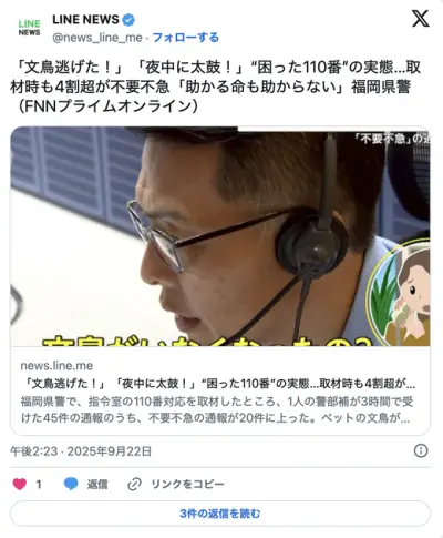 110「事件ですか?事故ですか?」女さん「文鳥が逃げたの!急いで来て!急いで来て!急いで来て!」