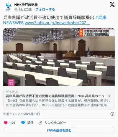 斎藤知事は知事失格!と主張していた自民兵庫県議、リゾートホテルの政治資金処理がバレて辞職