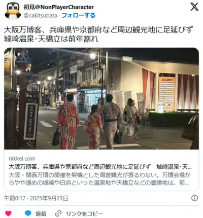 大阪万博客、周辺観光地に足延びず 城崎温泉・天橋立は前年割れ