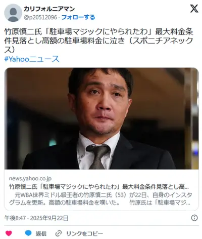 竹原慎二氏「駐車場マジックにやられたわ」 最大料金の条件見落とし… 高額の駐車場料金に泣き
