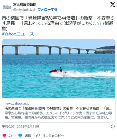 【沖縄】宮古島市で発達障害児8年で44倍増の衝撃 不安募らす島民「言われている理由では説明がつかない」