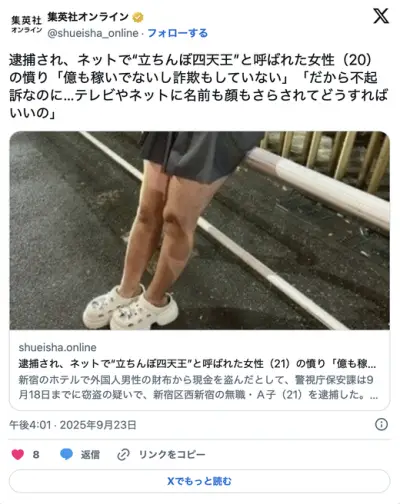逮捕され、立ちんぼ四天王と呼ばれた女性(21)「億も稼いでない詐欺もしてない」「不起訴なのに…テレビやネットに名前も顔もさらされ」