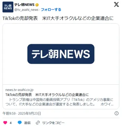 TikTok、米国へ売却。米IT大手オラクルなどの企業連合に