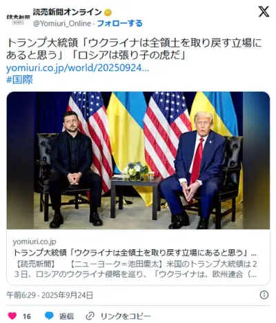トランプ大統領「ウクライナは全領土を取り戻す立場にあると思う」「ロシアは張り子の虎だ」