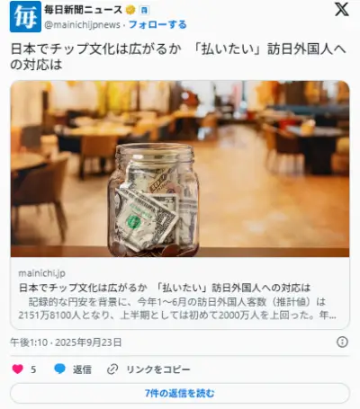 東京浅草で日本にチップ文化を導入する試みがなされている模様