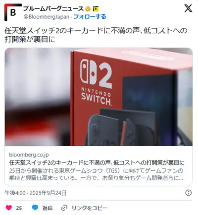 Nitendo Switch 2、カセット製造価格が高すぎ1本14,800円前後で売らないと従来の粗利維持できず