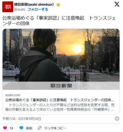 公衆浴場めぐる「事実誤認」に注意喚起 トランスジェンダーの団体
