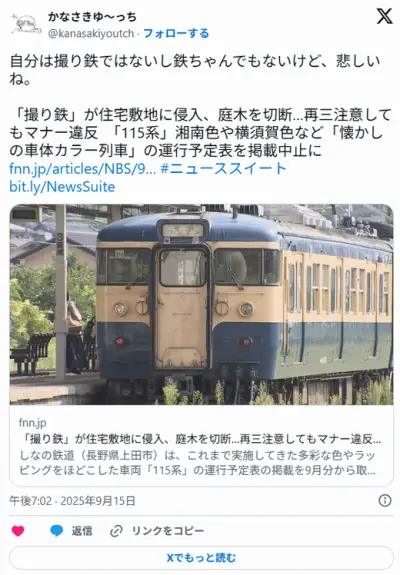 撮り鉄が不法侵入・無断伐採→注意しても改善見られず→運行予定掲載取りやめ
