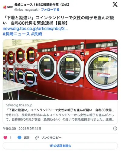 【騙された】コインランドリーで女性の帽子を盗んだ疑い 自称80代男を逮捕「下着だと思ったら、インナーキャップでした」