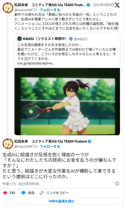 【悲報】絵師さん「AI使うな、そんなにわたしたちの技術にお金を払うのが嫌なんですか?」