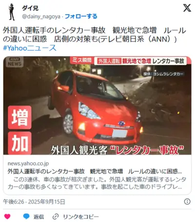 【インバウンド】外国人運転手のレンタカー事故 観光地で急増 ルールの違いに困惑 店側の対策も