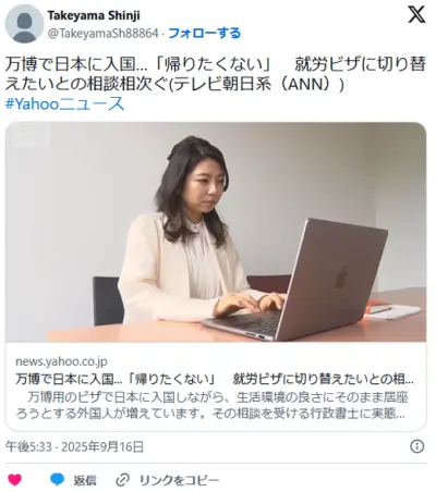 【テレビ】万博で日本に入国…「帰りたくない」 就労ビザに切り替えたいとの相談相次ぐ