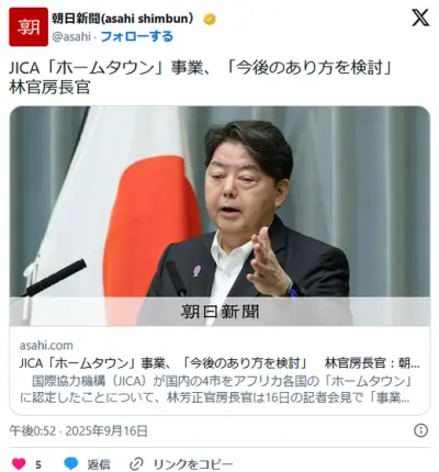 JICA「ホームタウン」事業、「今後のあり方を検討」 林官房長官…「移民の受け入れ促進ではない」