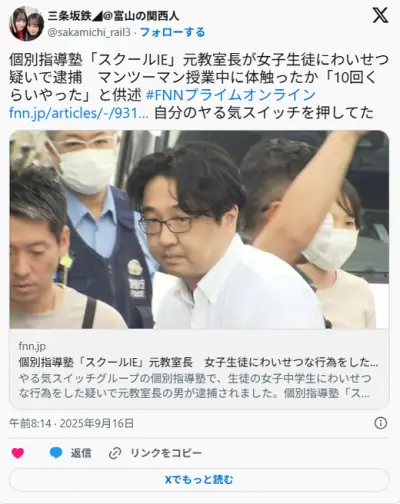塾講師「君のやる気スイッチはここかなー?」 JCの胸や太ももをスイッチした男を逮捕
