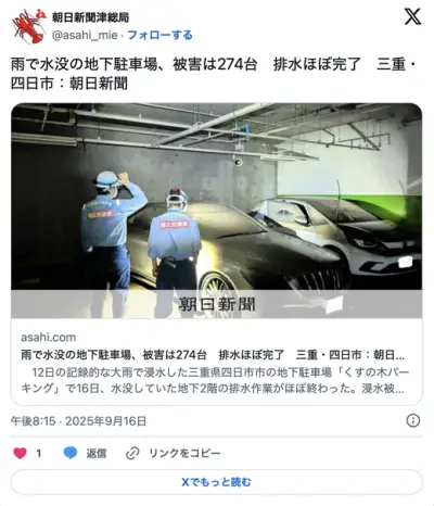 【悲報】三重県四日市市のくすの木パーキングさん、車274台をお釈迦にしてしまう