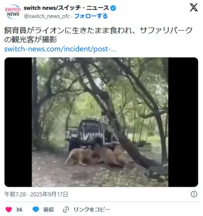 飼育員がライオンに生きたまま食われ、サファリパークの観光客が撮影
