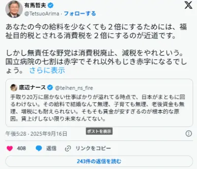 【えっ?】 早稲田大学名誉教授 「消費税を2倍にすれば、給料は2倍になります」