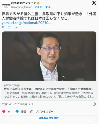 【正論】鳥取県知事「外国人労働者の排除が起きれば日本は回らなくなる。地方の一次産業を見て」
