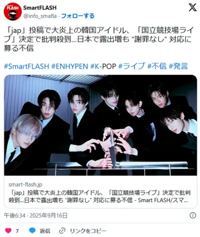 「jap」投稿で大炎上の韓国アイドル、国立競技場ライブ決定で批判殺到…“謝罪なし”対応に募る不信