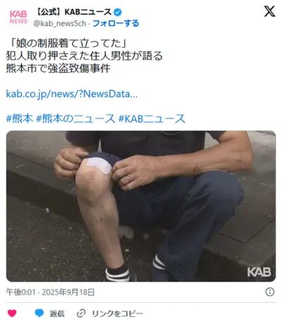 「ふすまを開けたら娘の制服着て立ってた」犯人取り押さえた住人男性が語る 熊本市で強盗致傷事件
