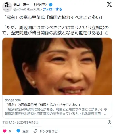 高市早苗「韓国と仲良くしましょう。韓国ドラマ、プルコギ、BTS大好き」