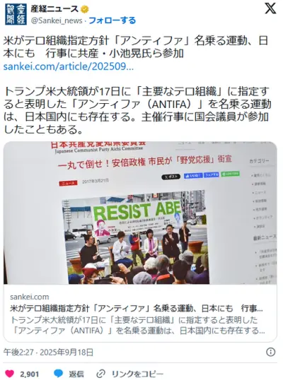 「ANTIFA」テロ組織に指定へ 国会議員にも構成員
