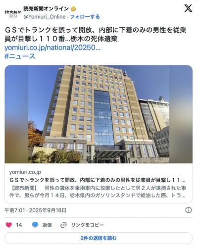 給油給油~♪ 間違えてトランク開けちゃった~! 中にパンツ一丁の死体 栃木高根沢