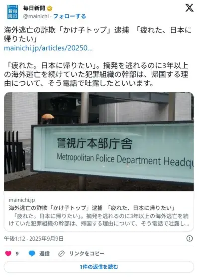 海外逃亡していた「かけ子トップ」が逮捕されに帰国「疲れた、日本に帰りたい」
