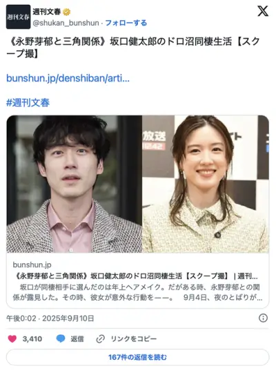 【文春】《永野芽郁と三角関係》坂口健太郎のドロ沼同棲生活【スクープ撮】