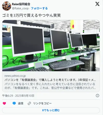 パソコンを「有償譲渡会」で購入しようと考えています。3年保証+メモリ8GB+Celeron搭載のモデルが「3万円」だとお得でしょうか?