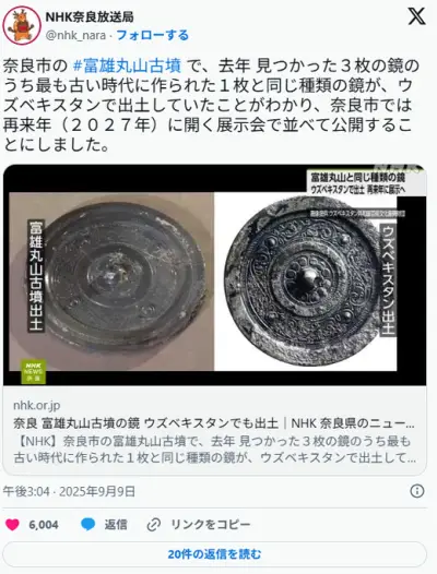 奈良の古墳から出た鏡 同じ物がウズベキスタンから出土