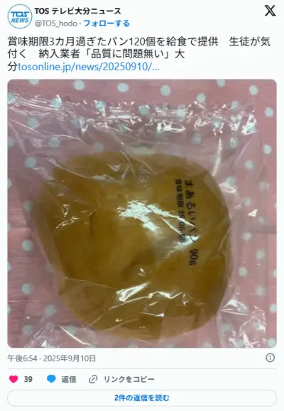 賞味期限3カ月過ぎたパン120個を給食で提供 生徒が気付く 納入業者「品質に問題無い」大分