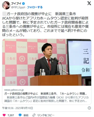 アフリカ黒人の第二の故郷となる予定だった新潟県三条市、市民の猛反対でガーナの視察団が訪日を中止