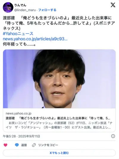 渡部建 「俺どうも生きづらいのよ」最近炎上した出来事に「待って俺、5年もたってるんだから…許してよ」