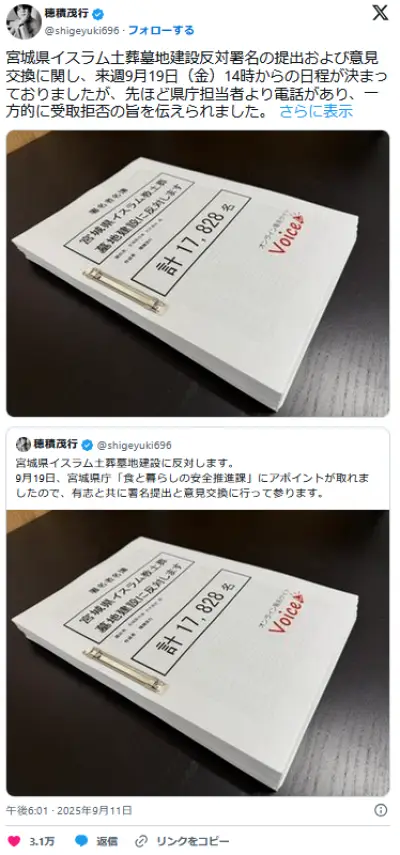 宮城県イスラム土葬墓地建設反対署名、県庁が一方的に受取拒否 村井嘉浩知事が突き返したか