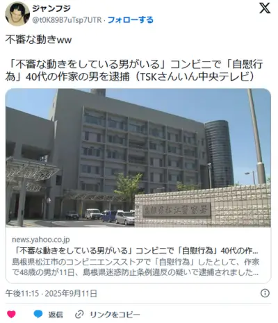 「不審な動きをしている男がいる」コンビニで「自慰行為」40代の作家の男を逮捕