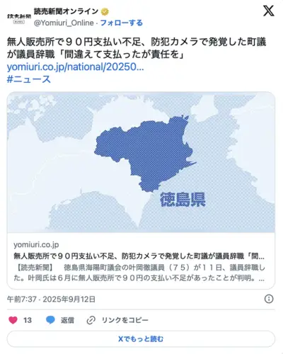 無人販売所で90円支払い不足、防犯カメラで発覚した町議が議員辞職「間違えて支払ったが責任を」